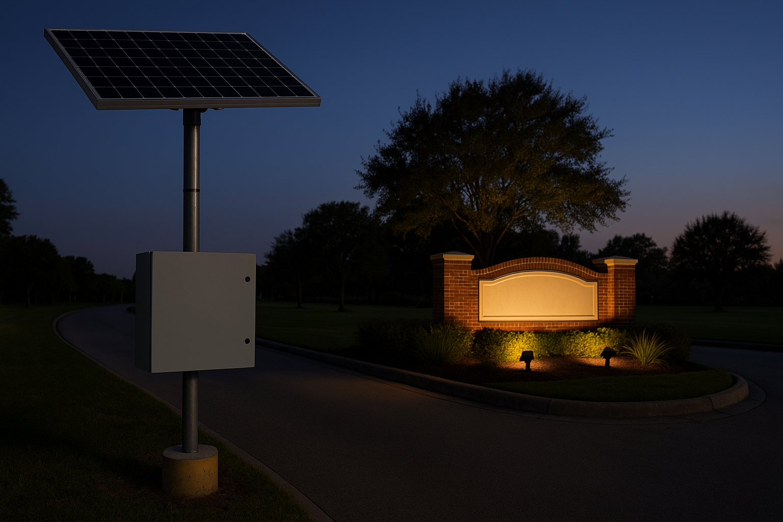 - Monument or HOA entrance signs (LED spotlights, decorative lights)